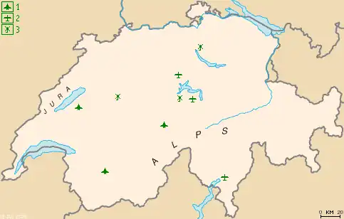 - Payerne (LSMP) FlSt6 (F-5E), FlSt17 FlSt18 (F/A-18), LT1 LT5 (Superpuma, Cougar, EC635)